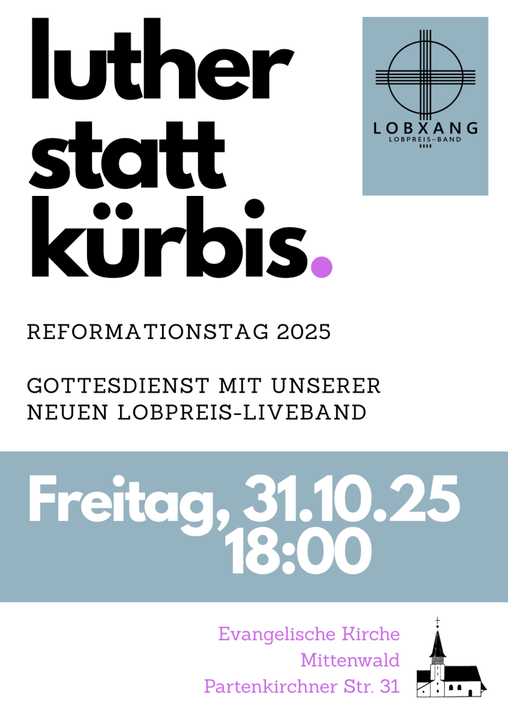 18.10. Jugendgottesdienst31.10. Lobpreis zum Reformationstag